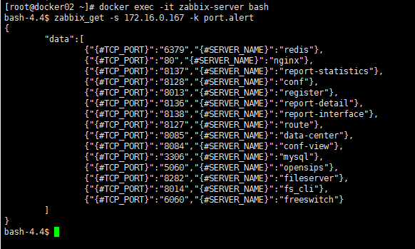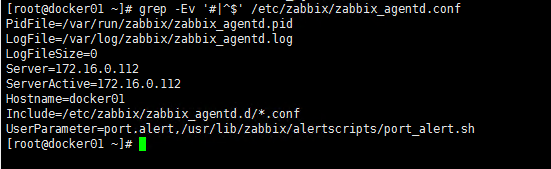 需要准备两个脚本,port_alert.sh为端口自发现脚本,port.conf为指定的监控端口号[root@docker01 ~]# cd /usr/lib/zabbix/alertscripts/