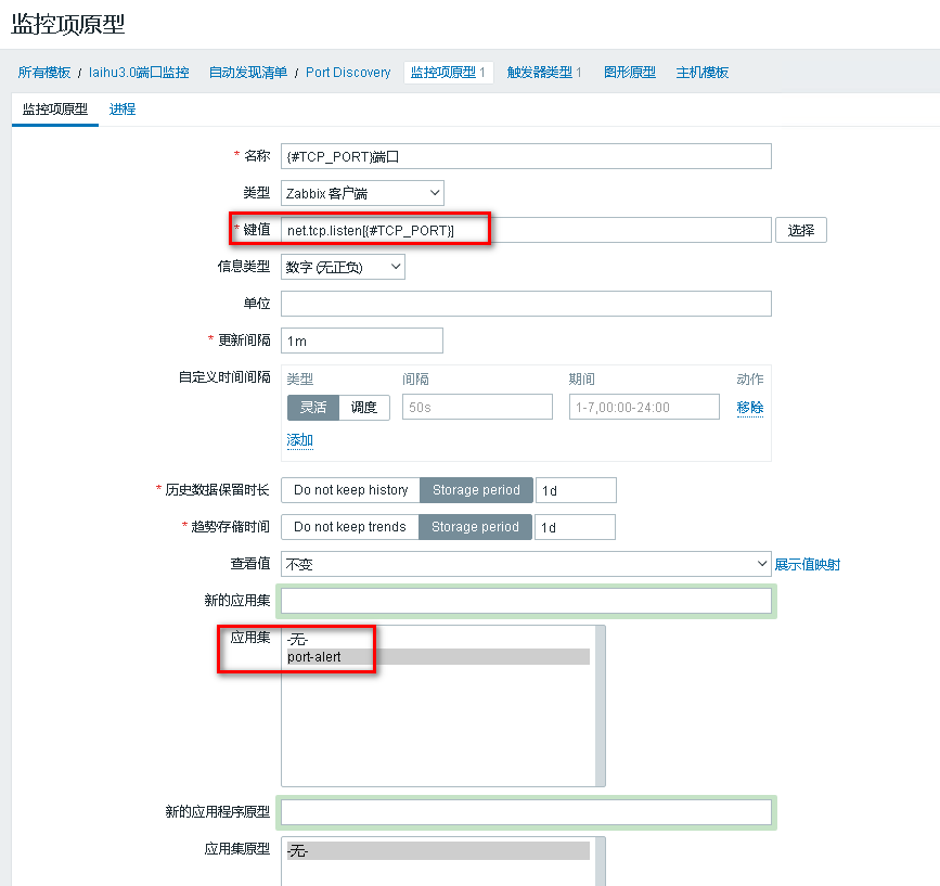 键值为zabbix_agentd.conf中配置的key:port.alert参数