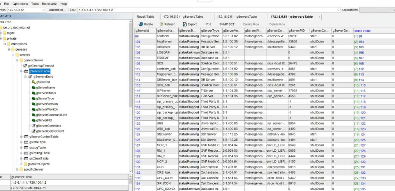 gsServersLastTrap{gsServersLastTrap="MCP_2:server is UP", instance="172.16.5.51", job="genesys_snmp"}