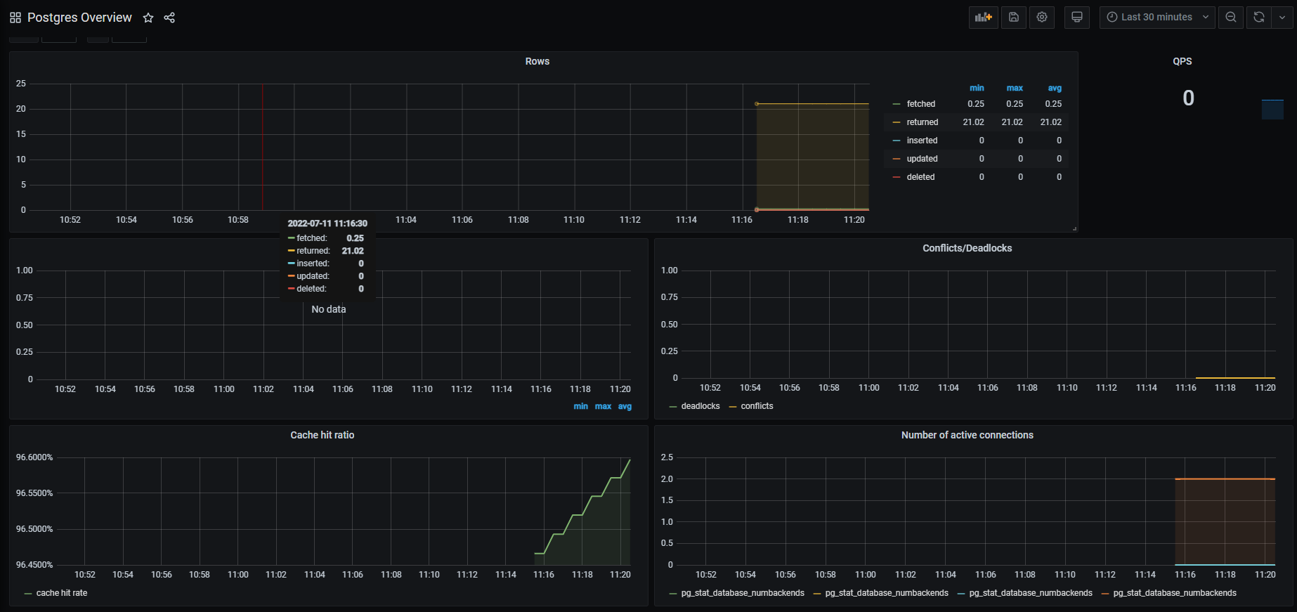 wget https://github.com/wrouesnel/postgres_exporter/releases/download/v0.5.1/postgres_exporter_v0.5.1_linux-amd64.tar.gz mkdir /usr/local/postgres_exporter && tar -zxvf postgres_exporter_v0.5.1_linux-amd64.tar.gz -C /usr/local/postgres_exporter cd /usr/local/postgres_exporter && mv postgres_exporter_v0.5.1_linux-amd64/* ./ && rm -fr postgres_exporter_v0.5.1_linux-amd64/ vim postgres_exporter.env DATA_SOURCE_NAME="postgresql://postgres:pgsql123@172.16.1.111:5432/?sslmode=disable" vim /etc/systemd/system/postgres_exporter.service [Unit] Description=Prometheus exporter for Postgresql Wants=network-online.target After=network-online.target [Service] User=postgres Group=postgres WorkingDirectory=/usr/local/postgres_exporter EnvironmentFile=/usr/local/postgres_exporter/postgres_exporter.env ExecStart=/usr/local/postgres_exporter/postgres_exporter Restart=always [Install] WantedBy=multi-user.target 服务启动 systemctl start postgres_exporter.service systemctl enable postgres_exporter.service systemctl status postgres_exporter.service 访问测试 curl http://172.16.1.111:9187/metrics 普罗米修斯配置 - job_name: 'postgres' static_configs: - targets: ['172.16.1.111:9187'] labels: instance: postgresdb1 # 如果有其他postgres_exporter如下添加: # - targets: ['10.10.xxx.56:9287'] # labels: # instance: db2 重启后加载curl -X POST 172.16.1.84:9090/-/reload grafanaid: 9628 455 |