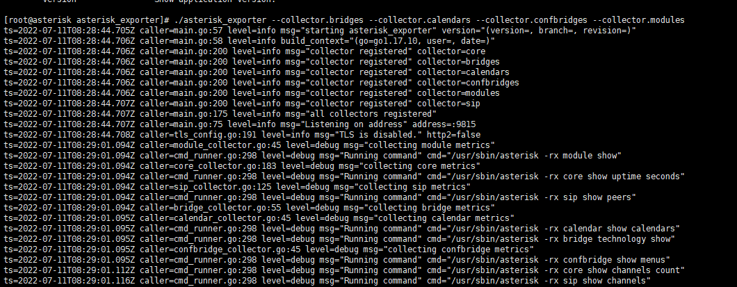 ./asterisk_exporter --collector.bridges --collector.calendars --collector.confbridges --collector.modules
