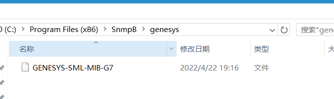 在C:\Program Files (x86)\SnmpB\目录新建一个项目目录如:genesys,并将mib文件放入