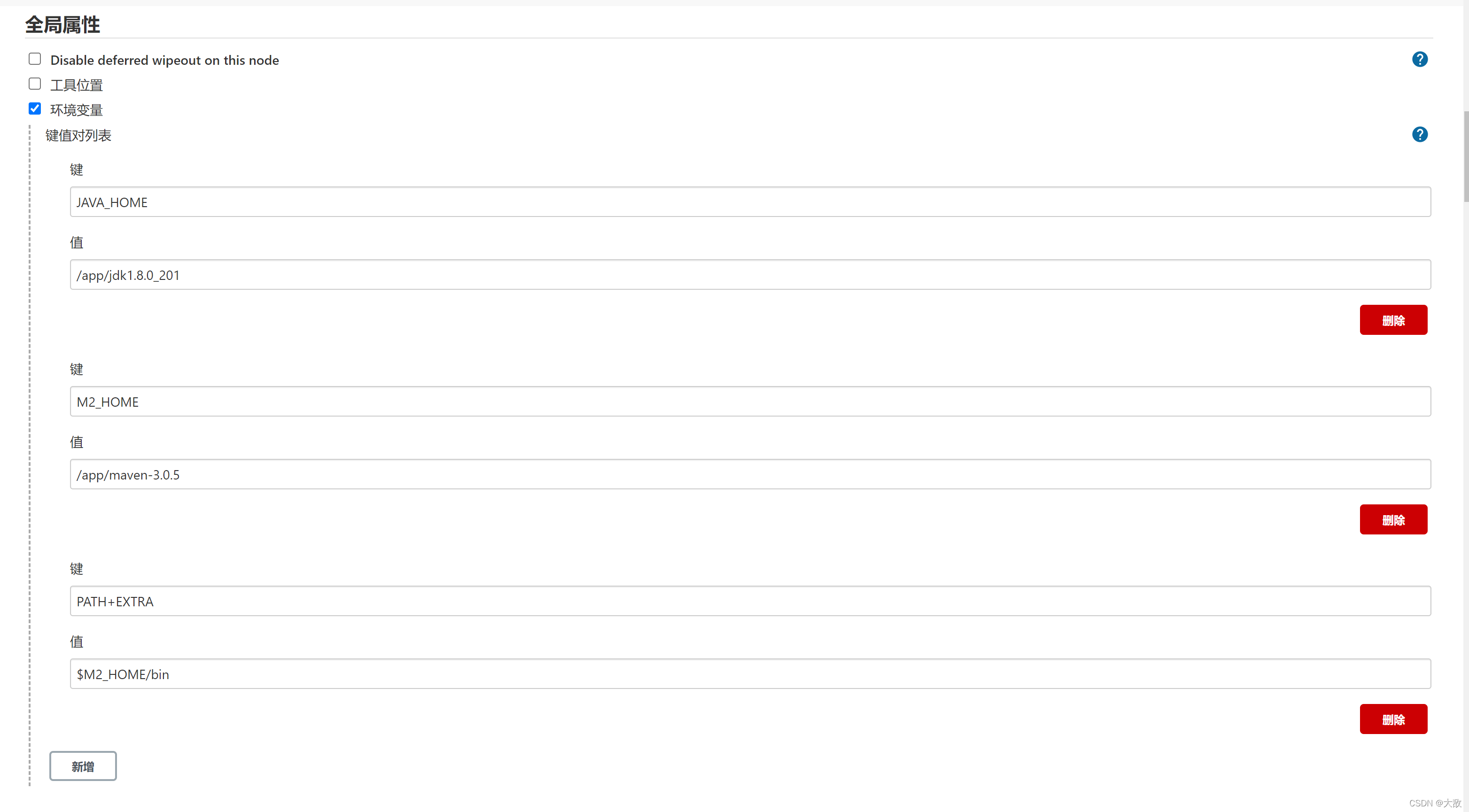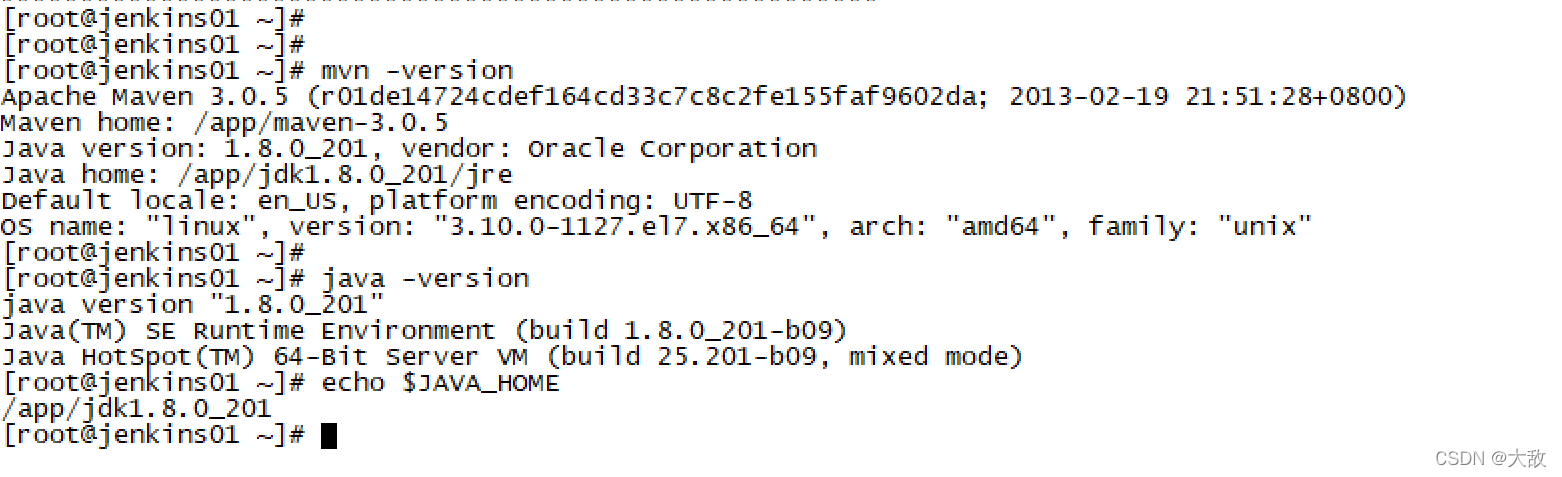 本文介绍了在jenkins中maven的安装及配置(安装maven及jdk的方法),以及如何在jenkins中创建maven任务。 有三点需要注意的地方。 - maven一定要安装在jenkins服务器上。 - maven安装之前要先安装jdk。 - 建任务前,需要有git环境,并配置好用户名密码。 **1\. JDK的安装** centos7是自带OPEN JDK1.8的,但是不建议用,因为后面在jenkins中配置JDK目录的时候,自带的OPEN JDK无法识别,还是建议到官网下载安装。 1)到oracle官网下载JDK1.8文件,并上传至服务器解压缩,无需安装,直接使用。  2)执行java文件,看下版本。  **2\. maven的安装** 1)到apache官网下载maven 包,并上传至服务器,无需安装,解压直接使用。  2)配置maven文件settings.xml,在/app/maven-3.0.5/conf下。 主要修改2个地方,localRepository目录 以及 MIRRORS镜像的URL(国外的太慢,改为阿里云的)。 localRepository目录修改方式: 默认在m2下,我们自己新建一个目录/app/maven-3.0.5/mvnrepository,重新添加一行 ``` ? <!-- localRepository ? ?| The path to the local repository maven will use to store artifacts. ? ?| ? ?| Default: ~/.m2/repository ? <localRepository>/path/to/local/repo</localRepository> ? --> ? <localRepository>/app/maven-3.0.5/mvnrepository</localRepository> ``` 依赖包镜像的下载地址URL修改方式: ``` <!-- mirrors | This is a list of mirrors to be used in downloading artifacts from remote repositories. | | It works like this: a POM may declare a repository to use in resolving certain artifacts. | However, this repository may have problems with heavy traffic at times, so people have mirrored | it to several places. | | That repository definition will have a unique id, so we can create a mirror reference for that | repository, to be used as an alternate download site. The mirror site will be the preferred | server for that repository. |--> <mirrors> <!-- mirror | Specifies a repository mirror site to use instead of a given repository. The repository that | this mirror serves has an ID that matches the mirrorOf element of this mirror. IDs are used | for inheritance and direct lookup purposes, and must be unique across the set of mirrors. | <mirror> <id>mirrorId</id> <mirrorOf>repositoryId</mirrorOf> <name>Human Readable Name for this Mirror.</name> <url>http://my.repository.com/repo/path</url> </mirror> --> <mirror> <id>alimaven</id> <name>aliyun maven</name> <url>http://maven.aliyun.com/nexus/content/groups/public/</url> <mirrorOf>central</mirrorOf> </mirror> </mirrors> ``` **3\. 服务器系统环境变量的设置** 1)编辑环境变量文件 vi /etc/profile 2)添加如下变量(根据自己的安装目录设置) ``` export JAVA_HOME=/app/jdk1.8.0_201 export MAVEN_HOME=/app/maven-3.0.5 export PATH=$JAVA_HOME/bin:$PATH:$MAVEN_HOME/bin ``` 3)生效环境变量,source /etc/profile 4)验证环境变量是否生效。能正确显示版本、home路径即可。  **4.jenkins中的变量设置** 1)设置“全局工具配置” 新增JDK设置,目录为上面讲的安装目录。(不能用系统自带的OPENJDK,不然会提示报错)  新增MVN设置  2)设置“系统配置”,增加环境变量,共3个,根据自己的安装目录填写。  5\. 在jenkins中新建maven项目  2)源码部分,根据自己的情况填写。  3)PRE STEP部分,"ROOT POM"还是使用pom.xml文件,"Goals and options"根据maven的命令填写,具体可以看提示“Specifies the goals to execute, such as “clean install” or “deploy”. This field can also accept any other command line options to Maven, such as “-e” or “-Djava.net.preferIPv4Stack=true”. ”  4)Post Steps我们先不填,先运行下看看是否可以编译成功。 5)运行任务,第一次运行会下载大量的java依赖包。 最后会出现success,说明编译成功。 在会在maven设localRepository目录下,生成war包。 ``` Downloading: http://maven.aliyun.com/nexus/content/groups/public/org/apache/maven/shared/maven-filtering/1.3/maven-filtering-1.3.jar Downloaded: http://maven.aliyun.com/nexus/content/groups/public/xpp3/xpp3_min/1.1.4c/xpp3_min-1.1.4c.jar (25 KB at 52.2 KB/sec) Downloading: http://maven.aliyun.com/nexus/content/groups/public/org/apache/maven/shared/maven-mapping/1.0/maven-mapping-1.0.jar Downloaded: http://maven.aliyun.com/nexus/content/groups/public/org/apache/commons/commons-compress/1.9/commons-compress-1.9.jar (370 KB at 564.8 KB/sec) Downloaded: http://maven.aliyun.com/nexus/content/groups/public/com/thoughtworks/xstream/xstream/1.4.4/xstream-1.4.4.jar (473 KB at 723.0 KB/sec) Downloaded: http://maven.aliyun.com/nexus/content/groups/public/org/codehaus/plexus/plexus-utils/3.0.20/plexus-utils-3.0.20.jar (238 KB at 686.2 KB/sec) Downloaded: http://maven.aliyun.com/nexus/content/groups/public/org/apache/maven/shared/maven-mapping/1.0/maven-mapping-1.0.jar (10 KB at 37.9 KB/sec) Downloaded: http://maven.aliyun.com/nexus/content/groups/public/org/apache/maven/shared/maven-filtering/1.3/maven-filtering-1.3.jar (50 KB at 127.8 KB/sec) [INFO] Packaging webapp [INFO] Assembling webapp [bbs] in [/var/lib/jenkins/workspace/maven_t1/target/bbs-5.7] [INFO] Processing war project [INFO] Copying webapp webResources [/var/lib/jenkins/workspace/maven_t1/lib] to [/var/lib/jenkins/workspace/maven_t1/target/bbs-5.7] [INFO] Copying webapp resources [/var/lib/jenkins/workspace/maven_t1/src/main/webapp] [INFO] Webapp assembled in [480 msecs] [INFO] Building war: /var/lib/jenkins/workspace/maven_t1/target/bbs-5.7.war [INFO] [INFO] --- maven-install-plugin:2.3.1:install (default-install) @ bbs --- Downloading: http://maven.aliyun.com/nexus/content/groups/public/org/codehaus/plexus/plexus-digest/1.0/plexus-digest-1.0.pom Downloaded: http://maven.aliyun.com/nexus/content/groups/public/org/codehaus/plexus/plexus-digest/1.0/plexus-digest-1.0.pom (2 KB at 3.9 KB/sec) Downloading: http://maven.aliyun.com/nexus/content/groups/public/org/codehaus/plexus/plexus-components/1.1.7/plexus-compon