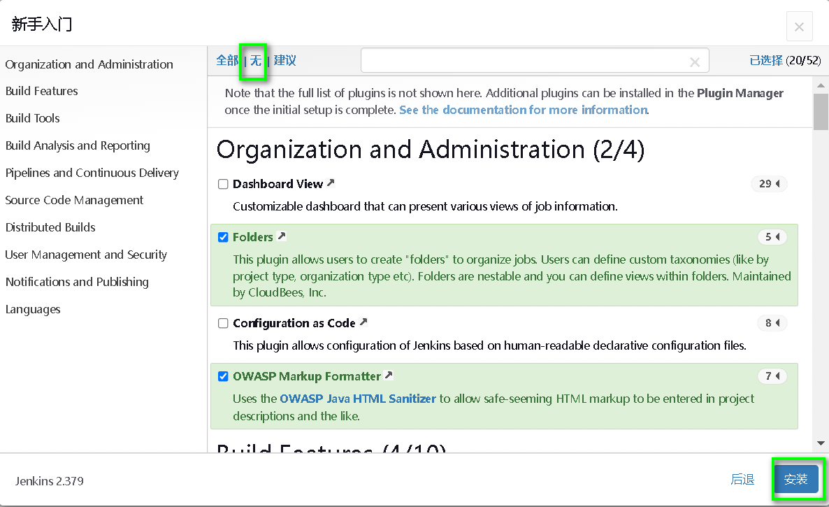[Jenkins官方地址:](https://www.jenkins.io/) [Jenkins官方文档:](https://www.jenkins.io/zh/doc/) [Maven官方下载:](https://maven.apache.org/download.cgi) ## 一、Jenkins安装 1、安装jdk11环境 ```bash yum -y install java-11-openjdk.x86_64 java -version ``` 2、下载 && 安装 && 启动 ```bash wget https://mirrors.tuna.tsinghua.edu.cn/jenkins/redhat/jenkins-2.379-1.1.noarch.rpm --no-check-certificate rpm -ivh jenkins-2.379-1.1.noarch.rpm systemctl start jenkins.service ``` 3、查看密码 && 网页登入 ```bash cat /var/lib/jenkins/secrets/initialAdminPassword ``` 浏览器访问:`http://localhost:8080` 输入密码 选择先不安装插件,因为Jenkins服务器在国外,国内访问太慢了,后续使用离线方式安装   插件离线安装参考:[Jenkins插件离线安装](https://www.cnblogs.com/qinziteng/p/16933738.html) ## 二、Maven安装 1、下载二进制包 ```bash wget https://dlcdn.apache.org/maven/maven-3/3.8.6/binaries/apache-maven-3.8.6-bin.tar.gz tar zxf apache-maven-3.8.6-bin.tar.gz mv apache-maven-3.8.6 /usr/local/maven ``` 2、配置阿里源 ```bash cd /usr/local/maven mkdir repository vim conf/settings.xml ... ... <!-- 添加下面这行 --> <localRepository>/usr/local/maven/repository</localRepository> <!-- 修改mirror如下 --> <mirror> <id>alimaven</id> <name>aliyun maven</name> <url>http://maven.aliyun.com/nexus/content/groups/public/</url> <mirrorOf>central</mirrorOf> </mirror> ``` 3、配置环境变量 ```bash vim /etc/profile ... ... export M2_HOME=/usr/local/maven export PATH=$PATH:$M2_HOME/bin source /etc/profile mvn -v ``` 4、构建jar包 ```bash cd 源码路径 mvn clean package ```