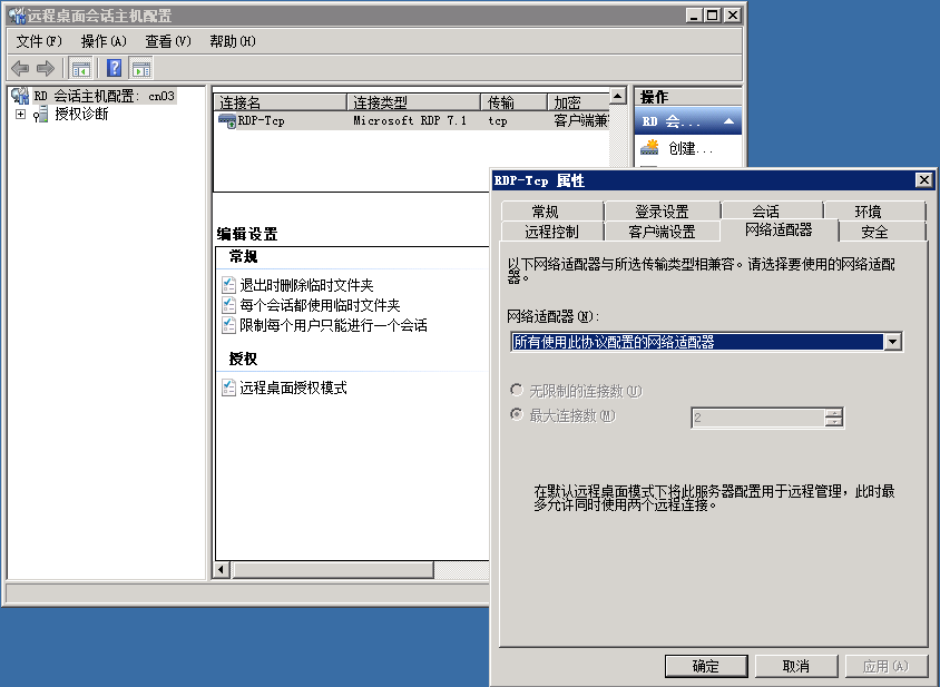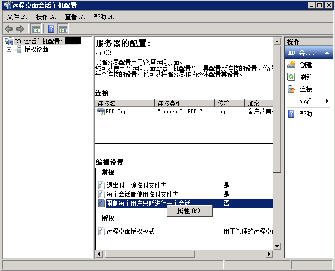 1 开始-管理工具-远程桌面服务-远程桌面会话主机配置