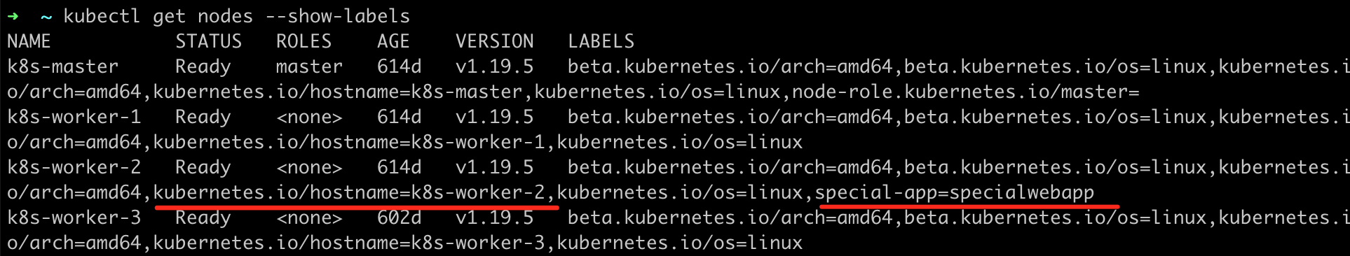 > 本文主要快速讲解Kubernetes的污点和容忍度,一句话总结:如果Pod能容忍某个节点上的污点,那么Pod就可以调度到该节点。 在K8S中,如果Pod能容忍某个节点上的污点,那么Pod就可以调度到该节点。如果不能容忍,那就无法调度到该节点。污点和容忍度就像谈恋爱的小情侣,你情我愿,女生知道男生的缺点,却依然选择容忍,这样他们可以生活在一起。如果女生容忍不了男生的缺点,那就没法生活在一起。 ## 1、理论 ### 1.1、污点和容忍度的概念 - 污点(Taints):定义在节点上,用于拒绝Pod调度到此节点,除非该Pod具有该节点上的污点容忍度。被标记有Taints的节点并不是故障节点。 - 容忍度(Tolerations):定义在Pod上,用于配置Pod可容忍的节点污点,K8S调度器只能将Pod调度到该Pod能够容忍的污点的节点上。 - 调度示例图:  ### 1.2、排斥等级 Node对Pod对象的排斥等级有3种: - NoSchedule:没有配置此污点容忍度的新Pod不能调度到此节点,节点上现存的Pod不受影响。 - PreferNoSchedule:没有配置此污点容忍度的新Pod尽量不要调度到此节点,如果找不到合适的节点,依然会调度到此节点。 - NoExecute:没有配置此污点容忍度的新Pod对象不能调度到此节点,节点上现存的Pod会被驱逐。 ### 1.3、容忍度操作符 在Pod上定义容忍度时,它支持两种操作符:Equal和Exists。 - Equal:容忍度与污点必须在key、value和effect三者完全匹配。 - Exists:容忍度与污点必须在key和effect二者完全匹配,容忍度中的value字段要使用空值。 ### 1.4、用法 污点定义在节点的nodeSpec中,容忍度定义在Pod的podSpec中。 污点和容忍度都是键值对的数据格式,但是要增加一个排斥等级(effect)标记。 语法格式为:"key=value:effect"。 ### 1.5、使用场景 **1、独占节点** - 如果想拿出部分节点给特定的Pod使用,可以通过给节点添加污点,然后特定的Pod加入对应的容忍度。 - 在集群中有些机器设备可能比较特殊,比如CPU性能很好、内存很大等等,不希望普通Pod占用这部分特殊节点,可以通过污点和容忍度来解决。 **2、驱逐Pod** 上文中定义了Node对Pod的排斥等级有3种。Node如果定义的排斥等级是NoExecute,那么没有配置该污点容忍度的Pod会被驱逐。 K8S 也会使用污点自动标识有问题的节点,比如节点在内存不足的情况下,节点控制器会自动为该节点打上污点信息,并且使用 NoExecute作为排斥等级,此时没有设置此类污点容忍度的Pod 会被驱逐。 DaemonSet控制器会无视此类污点,以便能在节点上部署重要的Pod。 目前,内置的污点也比较多,比如以下几个: ## 2、实战 ### 2.1、管理节点污点 给节点添加污点: ```Bash kubectl taint nodes node01 key=value:effect ``` 给节点删除污点,此处的effect可以没有 ```Bash kubectl taint nodes node01 key[:effect]- ``` ### 2.2、管理Pod的容忍度 上文中提到了,容忍度的操作符有2种:Equal和Exists,同时把排斥等级也要加上。 使用Equal的场景: ```YAML tolerations: - key: "key" operator: "Equal" value: "value" effect: "NoExecute" ``` 使用Exists的场景: ```YAML tolerations: - key: "key" operator: "Exists" effect: "NoExecute" ``` 如果Node上污点的排斥等级是NoExecute时,该Node上正在运行的Pod如果没有该污点的容忍度,就会被立刻驱逐。不过系统增加了`tolerationSeconds`字段,用来延迟驱逐Pod。 `tolerationSeconds`字段的意思是:如果 Pod 的容忍度配置里**存在**排斥等级为 `NoExecute` ,并且指定了属性 `tolerationSeconds` 的值,那么Pod 还能继续在该节点上运行的时间(单位为秒): ```YAML tolerations: - key: "key" operator: "Equal" value: "value" effect: "NoExecute" tolerationSeconds: 3600 ``` ### 2.3、具体操作 #### 2.3.1、前置小知识 - 查看看节点label,label是key-value的数据格式 ```Bash kubectl get nodes --show-labels ``` - 增加节点label,比如设置一个key是`special-app`,value是`specialwebapp`的label ```Bash kubectl label node k8s-worker-2 special-app=specialwebapp ```  查看某节点的污点情况,可以看到Taints这一栏是none,也可以看到label情况。 ```Bash kubectl describe node k8s-worker-2 ```  #### 2.3.2、实战示例过程 **步骤**: 1. 给定某个K8S节点,比如`k8s-worker-2`,节点的有一个`label`,Pod根据`label`选择调度到`k8s-worker-2`,此时调度成功。 2. 给`k8s-worker-2`增加污点,此时Pod调度失败。 3. 给Pod配置此污点的容忍度,调度成功。 4. 删除节点的污点,删除容忍度,部署成功。 **操作过程**: ```Bash kubectl taint nodes k8s-worker-2 question-node=broken-disk:NoSchedule ```  - 部署Pod,可以看到没有配置容忍度的Pod一直处于Pending状态,查看Pod的描述,也给出了原因:调度失败,node有污点,Pod没有容忍度。   ```Bash kubectl taint nodes k8s-worker-2 question-node- ```  **完整的yaml文件**: ```YAML apiVersion: v1 kind: Pod metadata: name: webapp namespace: demo labels: app: webapp spec: nodeSelector: # 选择调度到具有这个label的节点 "special-app": "specialwebapp" # kubernetes.io/hostname: k8s-worker-2 tolerations: - key: "question-node" operator: "Equal" value: "broken-disk" effect: "NoSchedule" containers: - name: webapp image: nginx ports: - containerPort: 80 ``` ## 总结 在K8S中,如果Pod能容忍某个节点上的污点,那么Pod就可以调度到该节点。如果不能容忍,那就无法调度到该节点。